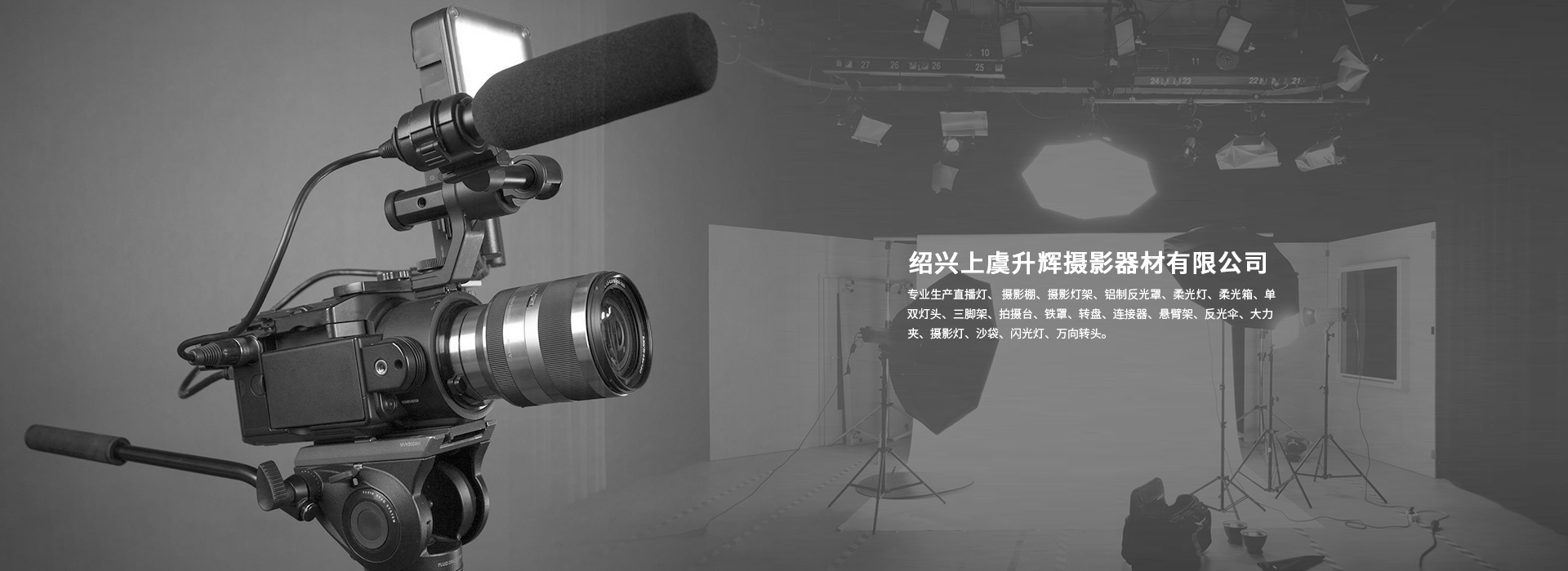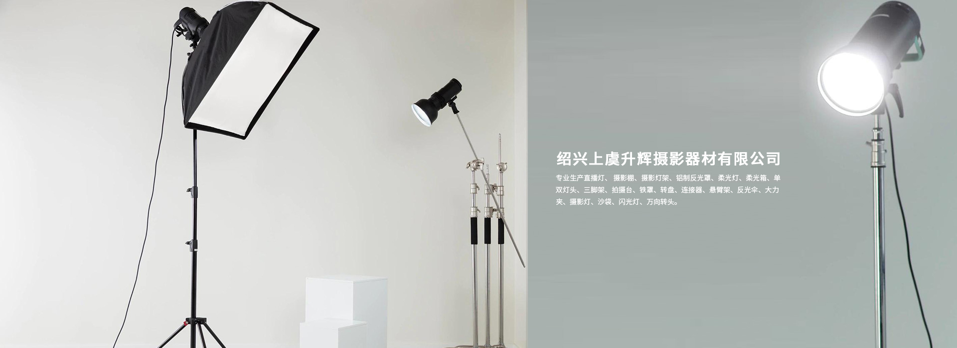 紹興上虞升輝攝影器材有限公司專業(yè)生產直播燈、 攝影棚、攝影燈架、鋁制反光罩、柔光燈、柔光箱、單雙燈頭、三腳架、拍攝臺、鐵罩、轉盤、連接器、懸臂架、反光傘、大力夾、攝影燈、沙袋、閃光燈、萬向轉頭。